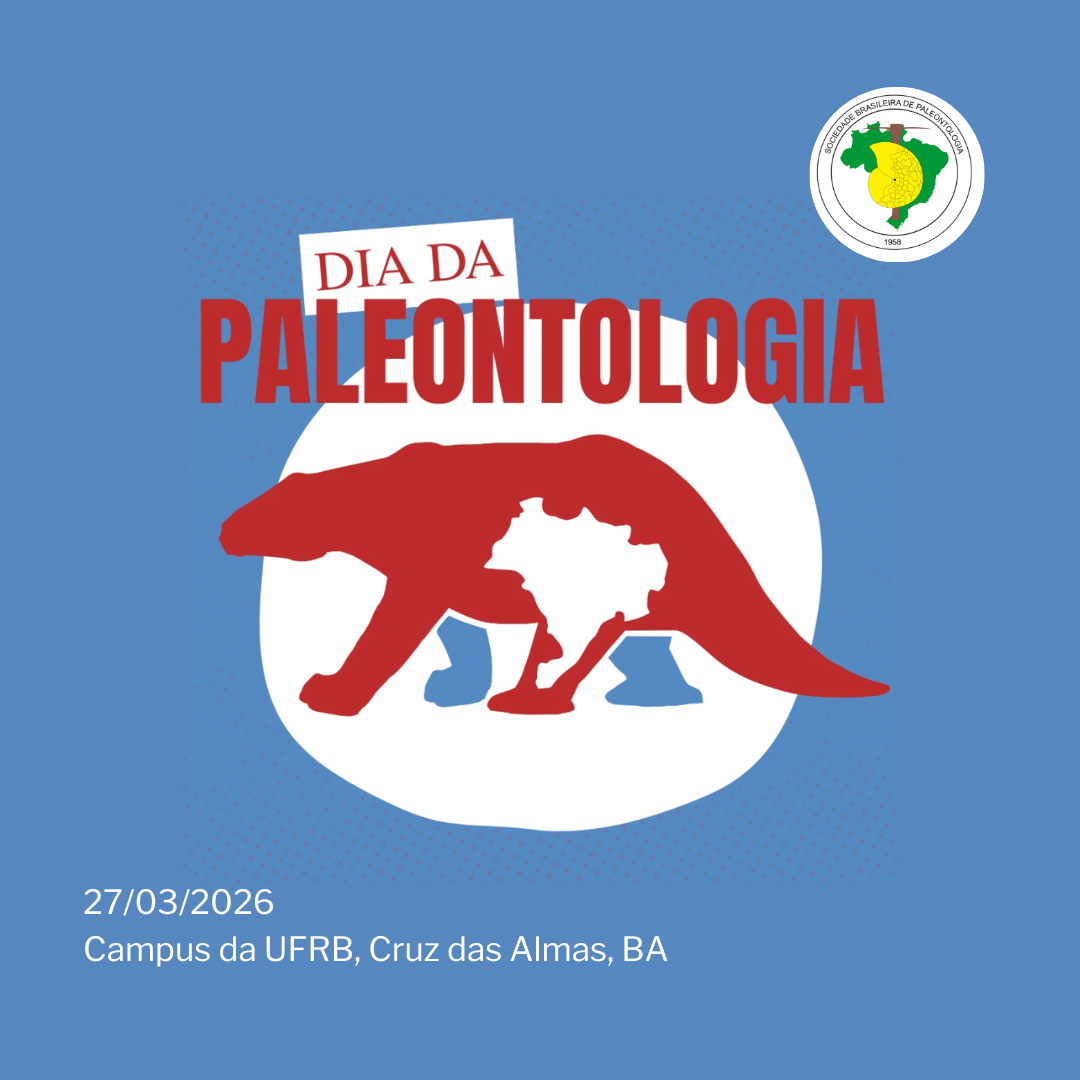 É com grande entusiasmo que a Sociedade Brasileira de Paleontologia convida todos vocês para um evento especial em comemoração ao Dia da Paleontologia no estado da Bahia, que será realizado no dia 27 de março de 2026, no Campus da UFRB, em Cruz das Almas. Será uma oportunidade única para reunir estudantes, pesquisadores, profissionais e entusiastas da nossa área em um dia cheio de atividades científicas e acadêmicas.
